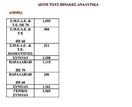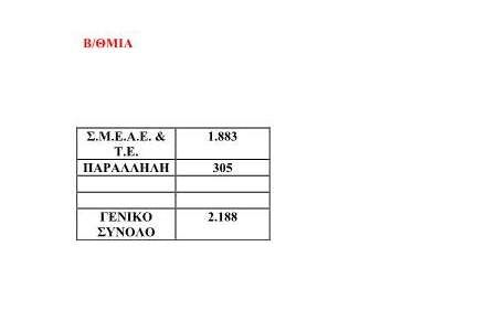 Για τη Β/θμια, 1.883 για ΣΜΕΑΕ και 305 για Παράλληλη Στήριξη, ΣΎΝΟΛΟ 2.188.