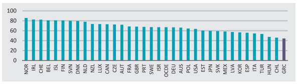 Γράφημα 2. Ικανοποίηση των πολιτών από το εκπαιδευτικό σύστημα και τα σχολεία - χώρες του ΟΟΣΑ