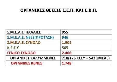 Αυτονόητο είναι ότι υπάρχουν αυξομειώσεις στον αριθμό των φοιτούντων μαθητών στις σχολικές μονάδες. Ωστόσο ο στόχος της πρότασης δεν ήταν να καλυφθούν όλα τα λειτουργικά κενά στις Σ.Μ.Ε.Α.Ε., αλλά να δημιουργηθεί μια σταθερή βάση σημαντικού αριθμού Οργανικών Θέσεων, καθώς υπάρχουν πολλές σχολικές μονάδες, οι οποίες αυτή τη στιγμή δεν διαθέτουν οργανική θέση Ε.Ε.Π. και Ε.Β.Π..