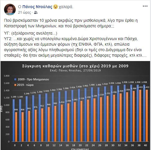 Πού βρισκόμασταν 10 χρόνια ακριβώς πριν μισθολογικά, λίγο πριν έρθει η Καταστροφή των Μνημονίων, και πού βρισκόμαστε σήμερα;;;