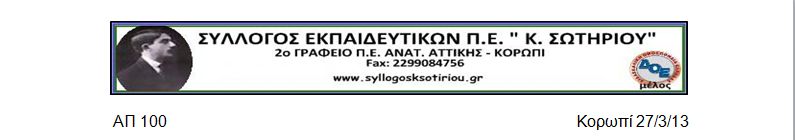 ΠΡΟΣ : Υπ. Παιδείας, Περιφέρεια εκπ. Αττικής, Δ/νση ΔΕ Α΄ Αθήνας, Δ/νση ΠΕ Αν. Αττικής, Σχ. Συμβούλους, τα μέλη, ΔΟΕ, Συλλόγους γονέων
