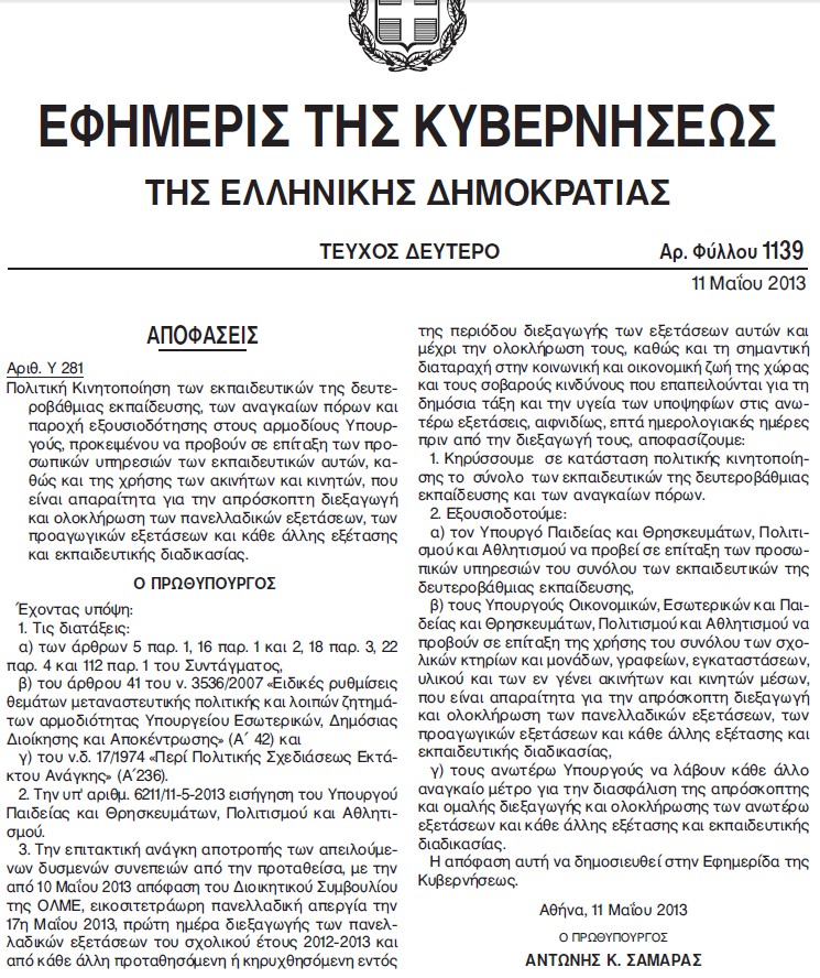 Το ΦΕΚ για την επίταξη των εκπαιδευτικών