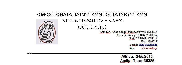 ΓΙΑ ΤΟ Δ.Σ. ΤΗΣ Ο.Ι.Ε.Λ.Ε.
