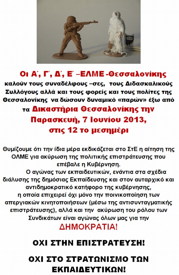 Α, Γ, Δ, Ε ΕΛΜΕ Θεσσαλονίκης: Ολοι στα δικαστήρια την Παρασκευή 7/6