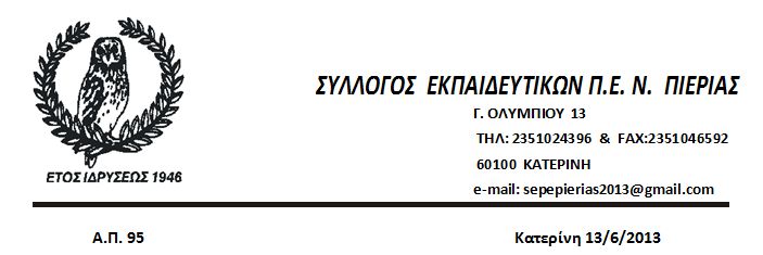 Ο Σύλλογος Εκπαιδευτικών Πρωτοβάθμιας Εκπαίδευσης Πιερίας στέκεται αλληλέγγυος προς τους εργαζομένους της ΕΡΤ και καταδικάζει απερίφραστα την πράξη νομοθετικού περιεχομένου, η οποία εν ριπή οφθαλμού καθιστά ανέργους χιλιάδες εργαζομένους.