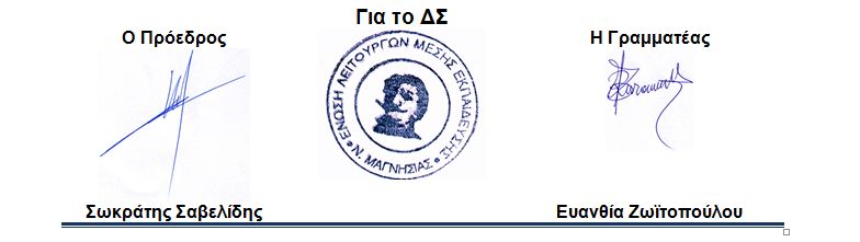 Το ΠΥΣΔΕ της Μαγνησίας δεσμεύτηκε για την εφαρμογή των προτάσεων του ΔΣ της ΕΛΜΕ για τον υπολογισμό των κενών, πλεονασμάτων και υπεραριθμιών και βέβαια για τον προσδιορισμό ονομαστικών υπεραριθμιών μόνο σε κλάδους – ειδικότητες που υπάρχουν κενά.