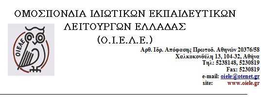 1. Άμεση αλλαγή της υπουργικής απόφασης και εφαρμογή του πρώτου κειμένου που προέκυψε μετά από διάλογο με την ΟΙΕΛΕ. – Καμία απόλυση ιδιωτικού εκπαιδευτικού.