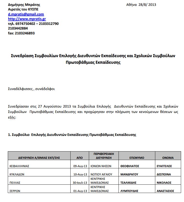 Συνεδρίαση Συμβουλίων Επιλογής Διευθυντών Εκπαίδευσης και Σχολικών Συμβούλων ΠΕ