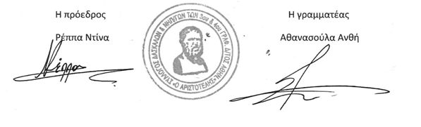 Ο σύλλογος εκπ/κών Π.Ε. «ο Αριστοτέλης» στην έκτακτη Γ.Σ. που πραγματοποίησε τη Δευτέρα 9/9, στις 12.30, στο 39ο-141ο ΔΣ, με μεγάλη μαζικότητα και με καταστατική απαρτία, αποφάσισε: