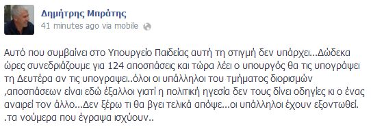Από την σελίδα του Δημήτρη Μπράτη στο Facebook