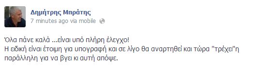 Από την σελίδα του Δημήτρη Μπράτη στο Facebook
