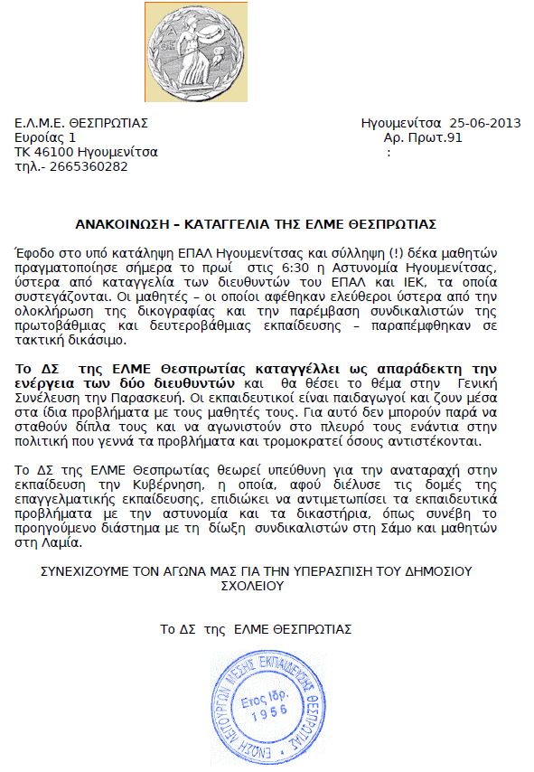 ΕΛΜΕ Θεσπρωτίας