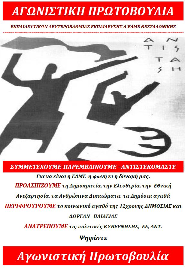 ΕΚΠΑΙΔΕΥΤΙΚΩΝ ΔΕΥΤΕΡΟΒΑΘΜΙΑΣ ΕΚΠΑΙΔΕΥΣΗΣ Α΄ΕΛΜΕ ΘΕΣΣΑΛΟΝΙΚΗΣ