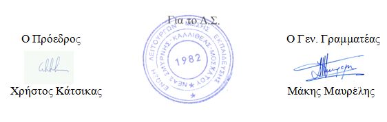ΓEN. ΓΡΑΜΜΑΤΕΑΣ : Μάκης Μαυρέλης (κιν: 6972109997, τηλ. σχολ: 2109560620)