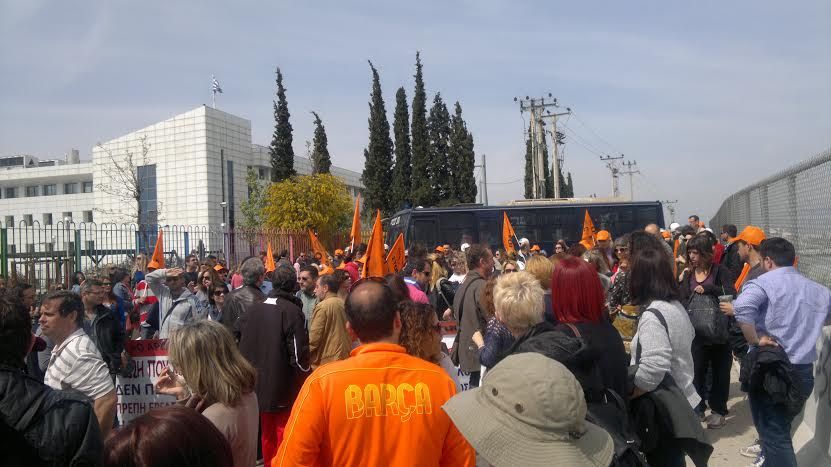 Η απεργία της 4/4 και η απεργιακή συγκέντρωση, ενάντια στο νέο σχολείο, την αξιολόγηση, τους νόμους που τσακίζουν μισθούς και συντάξεις, την υγεία και την παιδεία, έγινε με συντριπτική επιτυχία. Στα πλαίσια αυτής της συγκέντρωσης, πραγματοποιήθηκε συμβολικός αποκλεισμός του υπουργείου παιδείας, λόγω των σεμιναρίων των σχολικών συμβούλων. Οι συνάδελφοι του συλλόγου μας, που στάθηκαν στο ύψος των απαιτήσεων τόσο καιρό (υπογραφές, πρακτικά, αντίσταση σε πιέσεις και εκφοβισμούς), με τη συμμετοχή τους στην απεργία και τη συγκέντρωση, έδειξαν ακόμα μια φορά το μέγεθος της συσπείρωσής τους γύρω από το σωματείο και την πάλη για την απόκρουση της αξιολόγησης. Πάνω από 75% ήταν το ποσοστό συμμετοχής στην απεργία στις 4/4. Πάνω από 150 συνάδελφοι μέλη του συλλόγου μας, πήραν μέρος στην απεργιακή συγκέντρωση και τον αποκλεισμό του υπουργείου και μαζί με τις χιλιάδες άλλους εκπαιδευτικούς «θαύμασαν» τους σχολικούς συμβούλους, όχι μόνο να μπαίνουν στο υπουργείο για να πάρουν μέρος στα σεμινάρια της ντροπής, αλλά να το κάνουν και τη μέρα της απεργίας. Και τους είδαν να το «καταφέρνουν» χάρη στην αμέριστη συμπαράσταση των ΜΑΤ, των πούλμαν, των μηχανών των ομάδων «Ζ» και «ΔΙΑΣ» και άφθονων χημικών.
