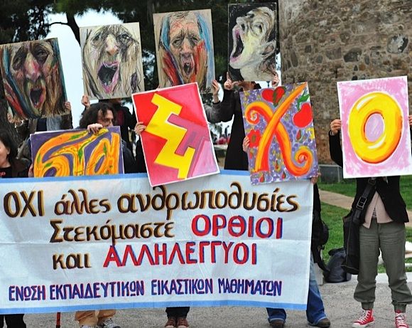 Το απόγευμα της Παρασκευής έγινε εκδήλωση διαμαρτυρίας, με την παρουσία ομάδας εικαστικών εκπαιδευτικών στο Λευκό Πύργο, με συνθήματα σε πικέτες και πανό κατά της διάλυσης της Καλλιτεχνικής Εκπαίδευσης.