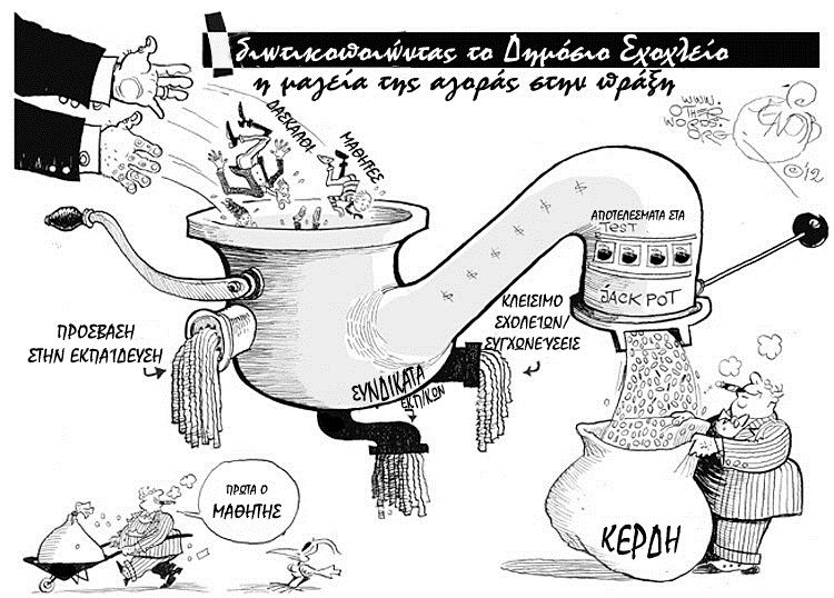 Όσο για την Ευρώπη, η κατάσταση είναι παρόμοια: χιλιάδες συγχωνεύσεις και καταργήσεις σχολείων στην Πορτογαλία, υποχρηματοδότηση των σχολείων στην Ισπανία μέσω της αξιολόγησης, διαχωρισμός των μαθητών στη Γερμανία από πολύ μικρή ηλικία σε αυτά που «μπορούν» και «δεν μπορούν» να σπουδάσουν. Τέλος παντού, η αναλογία μόνιμων και συμβασιούχων εκπαιδευτικών είναι σε βάρος των πρώτων.