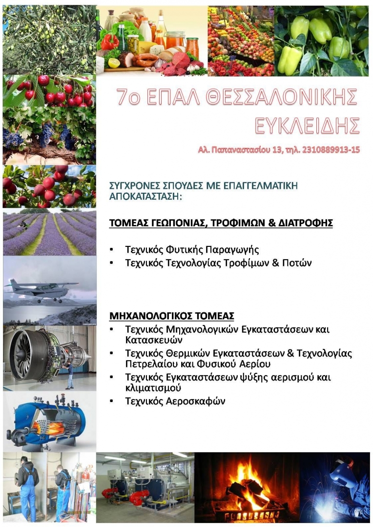 7ο ΕΠΑΛ ΘΕΣΣΑΛΟΝΙΚΗΣ- ΑΛ. ΠΑΠΑΝΑΣΤΑΣΙΟΥ 13- 3ος όροφος αίθ. 314 & 316 ΤΗΛ 2310889913