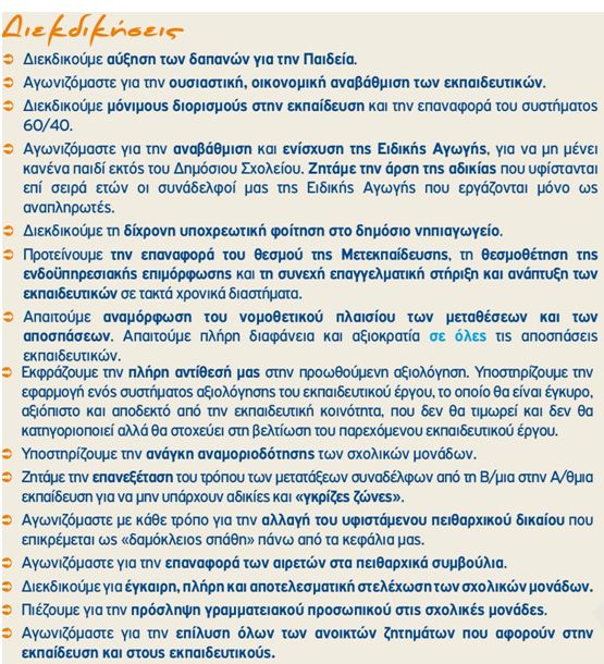 Είναι γεγονός ότι τα τελευταία χρόνια η Δημόσια Εκπαίδευση και οι λειτουργοί της έχουν μπει στο στόχαστρο των κυβερνώντων. Οι ολέθριες μνημονιακές πολιτικές που εφαρμόζονται έχουν οδηγήσει την πατρίδα μας σε βαθιά και αδιέξοδη κρίση!