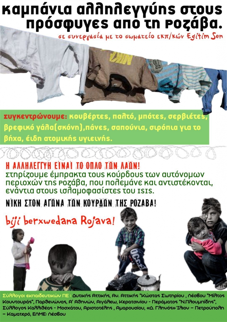 Θέμα: Καμπάνια αλληλεγγύης για τους πρόσφυγες της Ροζάβα-Κομπάνι