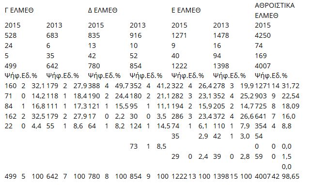 | Α ΈΛΜΕ | Β ΈΛΜΕ | Γ ΈΛΜΕ | Δ΄ΕΛΜΕ | Ε΄ΕΛΜΕ | ΣΥΝ | % | ΠΑΡΑΤΑΞΗ | |||||||||||