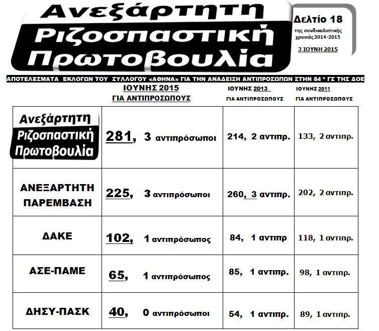 Ευχαριστούμε όλους τους συναδέλφους και τις συναδέλφισσες για την υποστήριξη και την εμπιστοσύνη που μας περιέβαλαν, αναδεικνύοντας και αυτή τη φορά την Πρωτοβουλία πρώτη δύναμη, κόντρα σε πανίσχυρους παραταξιακούς μηχανισμούς, που, παρά την επιλεκτική κινητοποίησή τους μπροστά στις εκλογές για τη ΔΟΕ, δεν κατάφεραν να διαστρέψουν τη μαχητική και ακηδεμόνευτη πορεία του Συλλόγου μας, ούτε να ακυρώσουν τη δυναμική της ενότητας και του ενιαίου ριζοσπαστικού μετώπου που σθεναρά υποστηρίζουμε στο κίνημα και τον κλάδο.