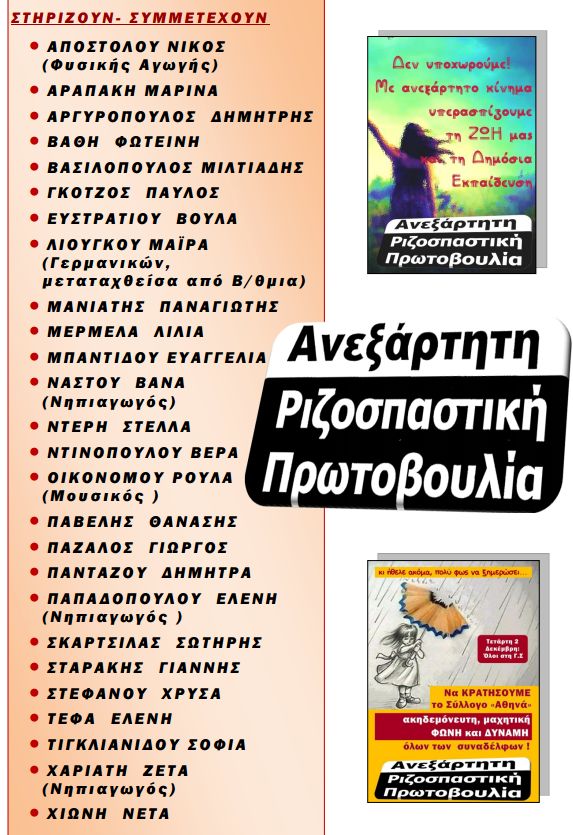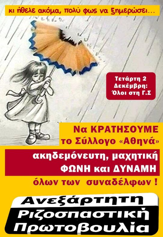 Να κρατήσουμε το σύλλογο « Αθηνά» ακηδεμόνευτη, μαχητική