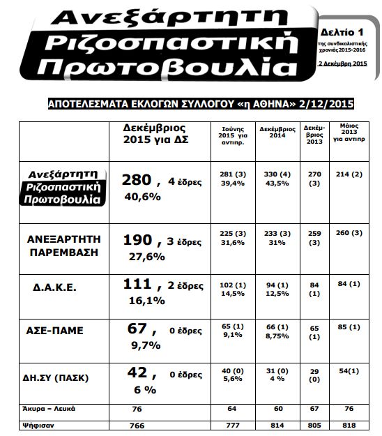 Ευχαριστούμε όλους τους συναδέλφους και τις συναδέλφισσες για τη υποστήριξη και την εμπιστοσύνη με την οποία μας περιέβαλαν, αναδεικνύοντας την Πρωτοβουλία και πάλι πρώτη δύναμη στο σύλλογο «Αθηνά». Δικαίωσαν έτσι, την ενωτική και μαχητική στάση και τη δράση στο Σύλλογό μας σε μια κρίσιμη περίοδο για τη Δημόσια Εκπαίδευση και ολόκληρη την κοινωνία. Απαίτησαν ένα Σύλλογο Αντίστασης, Ενότητας και Αλληλεγγύης, ακηδεμόνευτη φωνή και Δύναμη κάθε συναδέλφου.