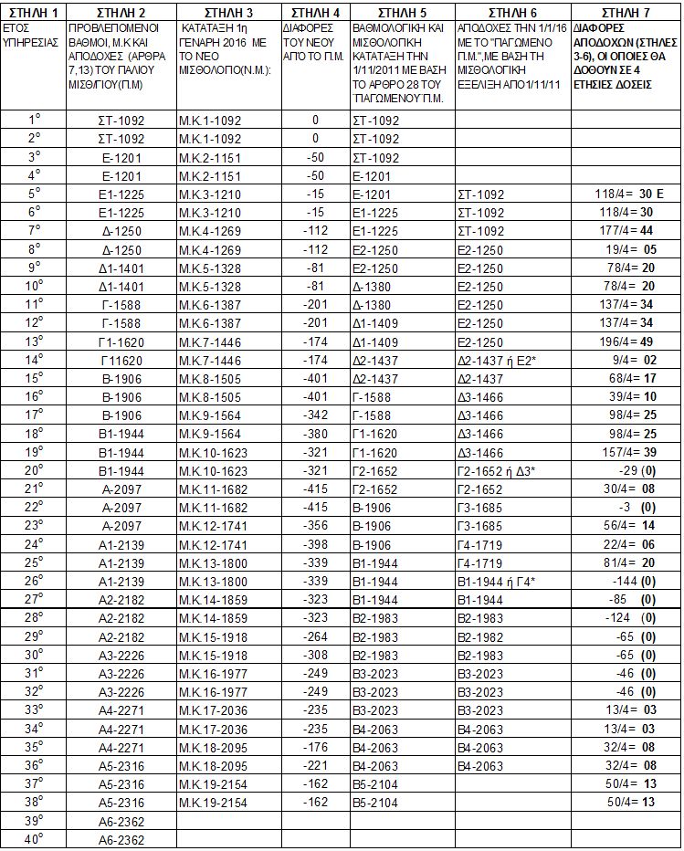 4. Για τη ΣΤΗΛΗ 6: Το αστεράκι * αφορά περιπτώσεις εκπαιδευτικών που την 1/11/2011 ( με το Ν.Μ. η κατάταξη γίνεται 1/1/16) δεν κατατάχτηκαν στον επόμενο βαθμό για 1 μέρα έως 2 μήνες.