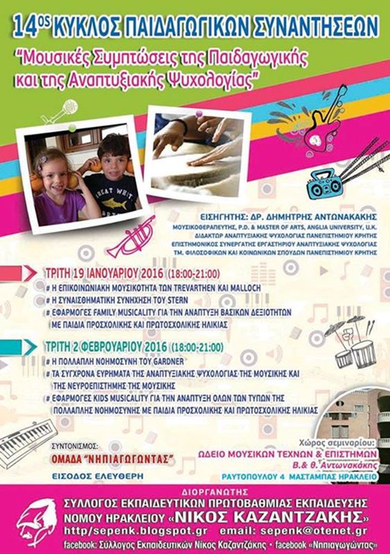 3. 14ος Κύκλος Παιδαγωγικών Συναντήσεων με θέμα « Μουσικές Συμπτώσεις της Παιδαγωγικής και της αναπτυξιακής ψυχολογίας».
