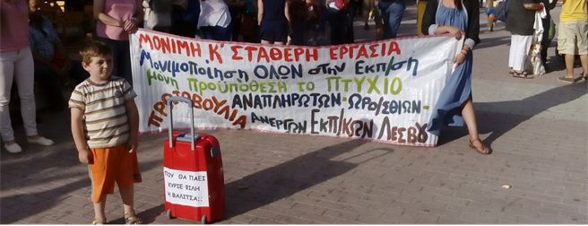 Με τη μαζική συμμετοχή εκπαιδευτικών, γονιών και εργαζομένων από κάθε γωνιά της Λέσβου πραγματοποιήθηκε την Τρίτη 7/6 πορεία στην πόλη της Μυτιλήνης με συνθήματα: