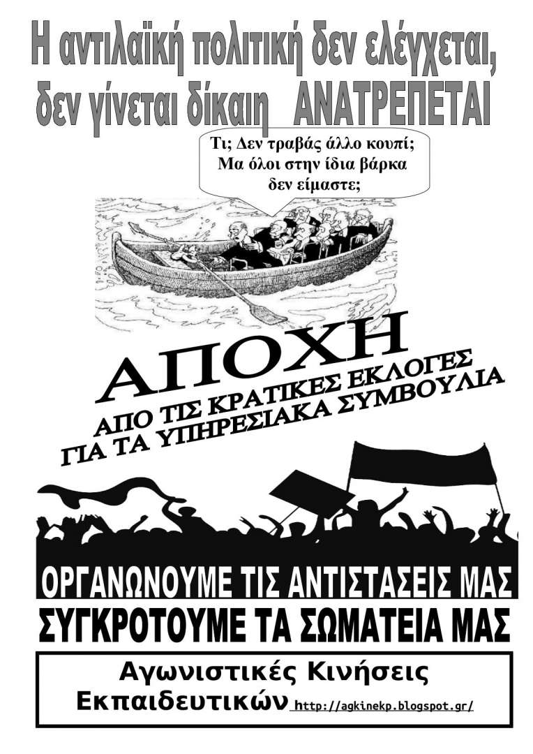 - Γιατί η συμμετοχή σε αυτά τα όργανα δημιουργεί αυταπάτες ότι τάχα οι εκπαιδευτικοί δια αντιπροσώπων μπορούν να συνδιοικήσουν με την κυβέρνηση.