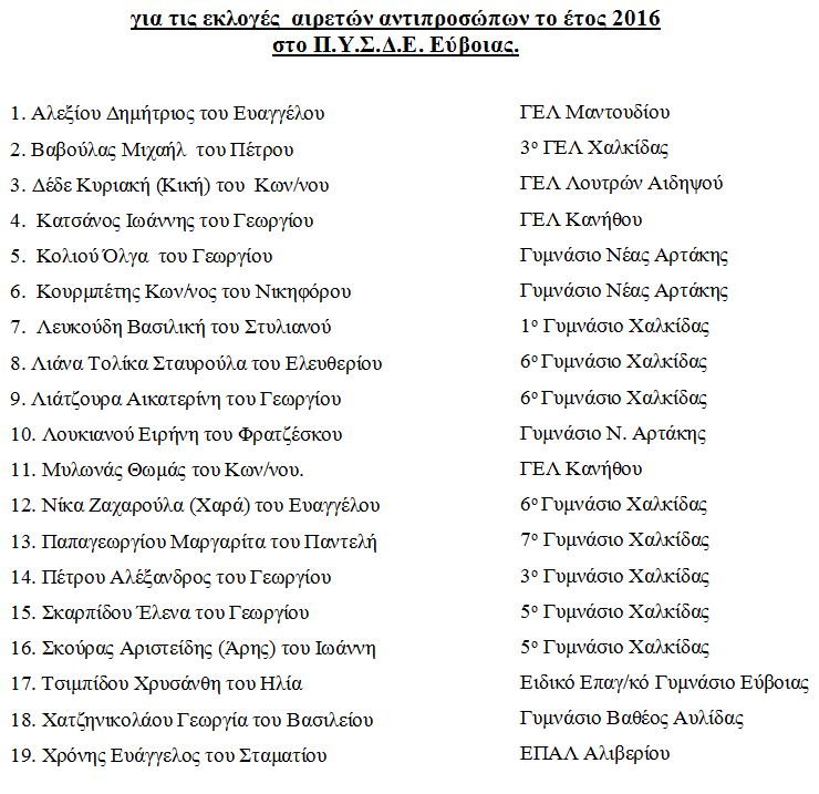 ΕΚΛΟΓΙΚΗ ΔΙΑΚΗΡΥΞΗ ΤΩΝ ΚΑΘΗΓΗΤΩΝ-ΚΑΘΗΓΗΤΡΙΩΝ ΕΝ ΔΡΑΣΕΙ ΓΙΑ ΤΟ ΠΥΣΔΕ ΕΥΒΟΙΑΣ