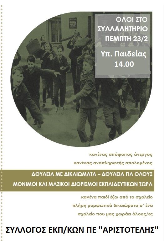 ΟΛΕΣ/ΟΛΟΙ ΣΤΗΝ ΚΙΝΗΤΟΠΟΙΗΣΗ ΣΤΟ ΥΠΟΥΡΓΕΙΟ ΠΑΙΔΕΙΑΣ, ΠΕΜΠΤΗ 23/2, ΣΤΙΣ 14.00
