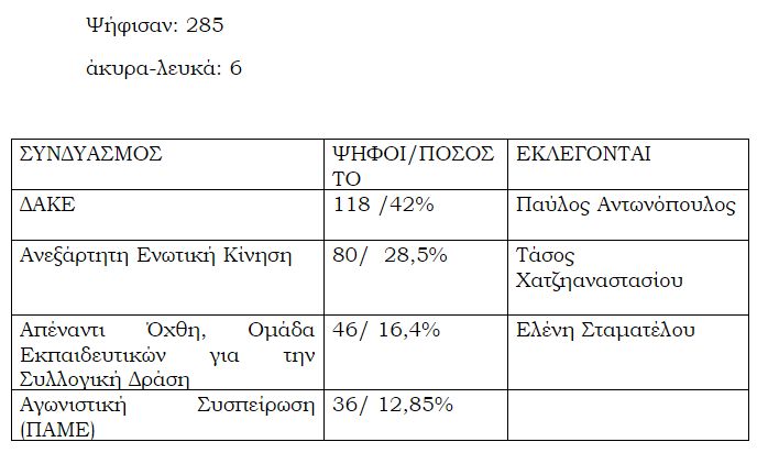 Αποτελέσματα εκλογών της 4ης Μαΐου 2017 για την ανάδειξη αντιπροσώπων για το 18ο Συνέδριο της ΟΛΜΕ:
