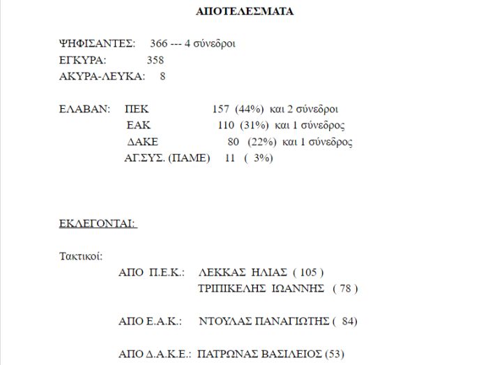 Ακολουθούν τα αποτελέσματα των εκλογών στην Α' ΕΛΜΕ Κορινθίας για την ανάδειξη των αντιπροσώπων για το 18ο Συνέδριο της ΟΛΜΕ: