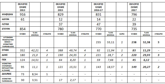 Σας αποστέλλουμε τα αποτελέσματα των εκλογών της Δ’ ΕΛΜΕ Θεσσαλονίκης για το 18ο Συνέδριο της ΟΛΜΕ.