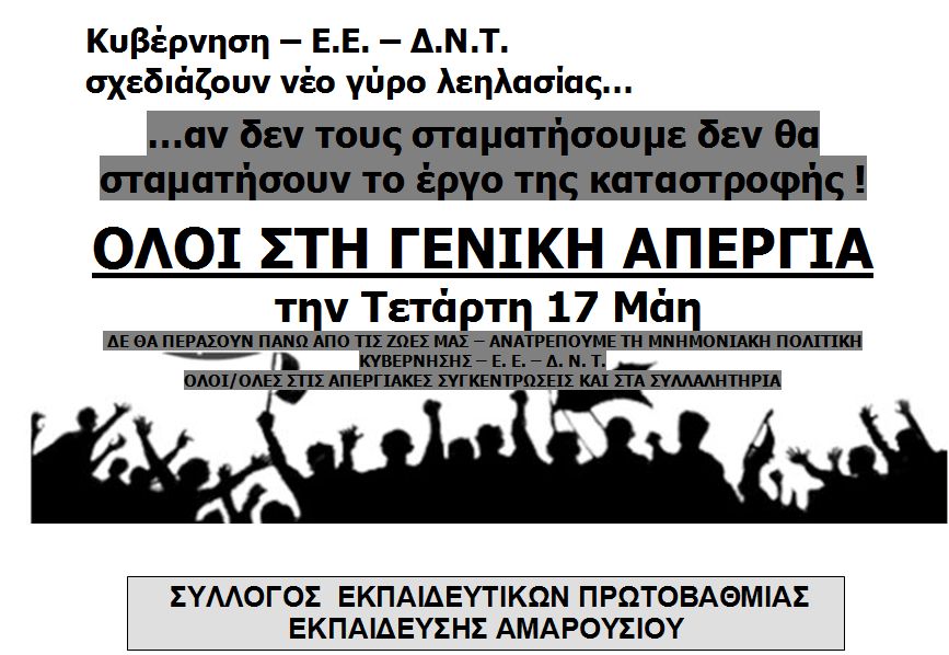 ΟΛΟΙ/ΟΛΕΣ ΣΤΙΣ ΑΠΕΡΓΙΑΚΕΣ ΣΥΓΚΕΝΤΡΩΣΕΙΣ ΚΑΙ ΣΤΑ ΣΥΛΛΑΛΗΤΗΡΙΑ