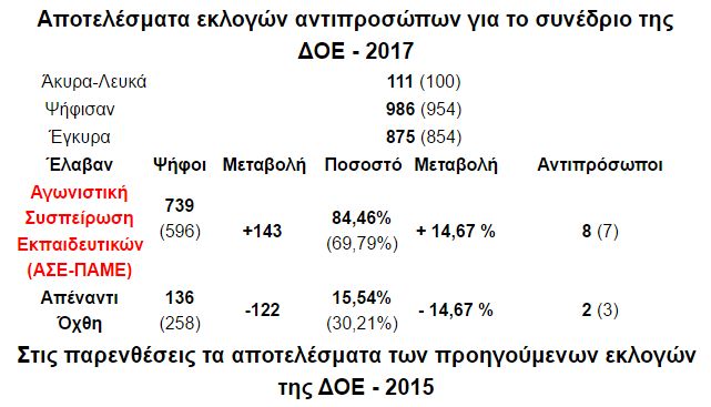 Ακολουθούν τα αποτελέσματα των εκλογών για την ανάδειξη αντιπροσώπων στη ΔΟΕ, της 25ης Μαΐου 2017 του Συλλόγου εκπαιδευτικών Π.Ε Αν. Αττικής «Ο ΣΩΚΡΑΤΗΣ».