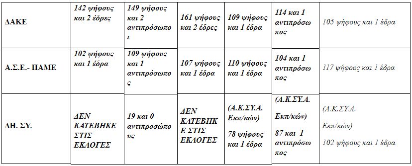 Αποτελέσματα εκλογών (8 – 11 – 2017) για την ανάδειξη Δ. Σ. του Συλλόγου Εκπ/κών Π. Ε. Αμαρουσίου:
