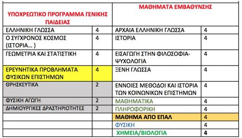 Όπως παρατηρούμε παύουν να υπάρχουν τα ως τώρα υποχρεωτικά μαθήματα (πχ αρχαία, μαθηματικά κ.α.) ενώ στα υποχρεωτικά μαθήματα εντάσσονται οι λεγόμενες Δημιουργικές Δραστηριότητες και ο Σύγχρονος Κόσμος, μαθήματα που η ασάφειά τους μας οδηγεί στο συμπέρασμα πως θα μπορούν να διδαχθούν από οποιαδήποτε ειδικότητα πλεονάζει. Προφανώς και τα Ερευνητικά Προβλήματα Φυσικών Επιστημών θα τα διδάσκουν όλες οι σχετικές με τις φυσικές επιστήμες ειδικότητες, ανάλογα με το ποιος πλεονάζει.