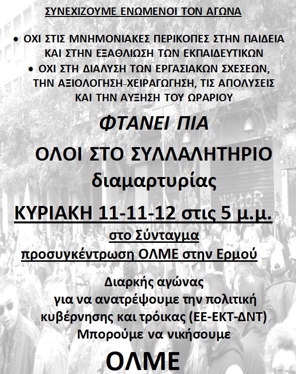 ΟΛΜΕ: Ολοι στο συλλαλητήριο στις 11/11