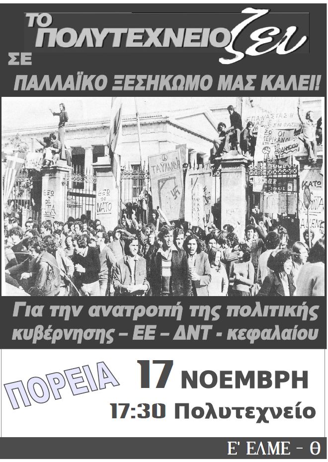 ΟΛΟΙ ΣΤΗΝ ΠΟΡΕΙΑ 17 ΝΟΕΜΒΡΗ - 5.30 μ.μ. - ΠΟΛΥΤΕΧΝΕΙΟ