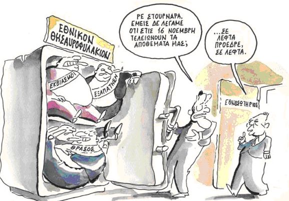 Ο δήθεν ισχυρισμός τους ότι τα προτεινόμενα μέτρα είναι αναγκαία για την παραμονή της χώρας στο ευρώ αποτελεί στην πράξη άλλον έναν απροσχημάτιστο εκβιασμό, ώστε να περάσουν αυτά με το λιγότερο πολιτικό κόστος.