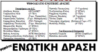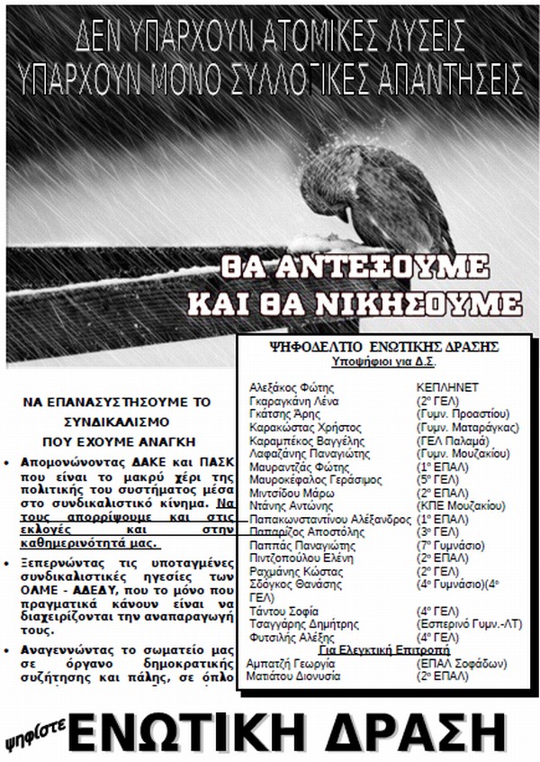 Σαν Ενωτική Δράση σας καλούμε να συμμετέχετε στις εκλογές, και να πυκνώσετε τις γραμμές μας στους αγώνες που έρχονται.