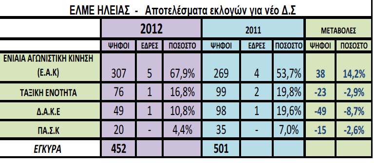 ΕΛΜΕ Ηλείας: Αποτελέσματα εκλογών