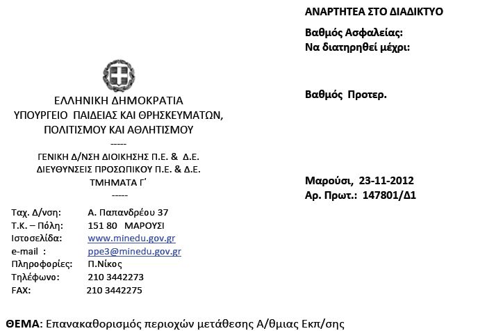 Υπουργείο Παιδείας: Επανακαθορισμός περιοχών μετάθεσης ΠΕ ΔΕΙΤΕ ΤΟ ΣΥΝΗΜΜΕΝΟ