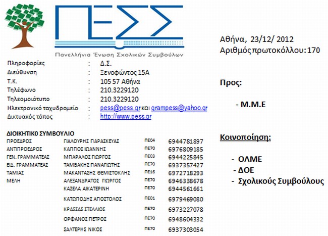 Για το Δ.Σ. της Π.Ε.Σ.Σ. | ||