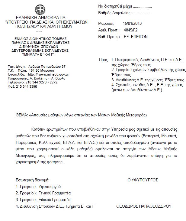 Υπουργείο Παιδείας: Απουσίες μαθητών λόγω απεργίας των Μέσων Μαζικής Μεταφοράς