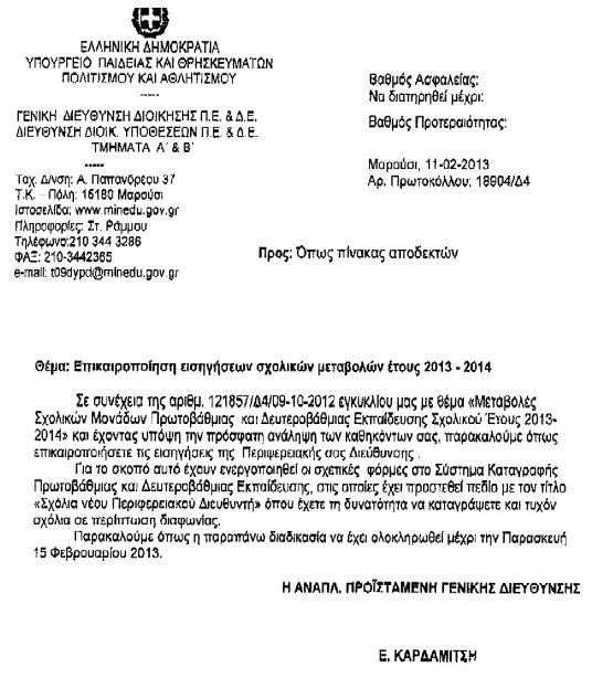 Επικαιροποίηση των προτάσεων για συγχωνεύσεις σχολείων ζητάει το Υπουργείο Παιδείας
